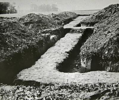 Die freigelegten Fundamente des südöstlichen Chores und Schiffes der Kirche, 1949 (Foto: Heimatverein Dornberg)